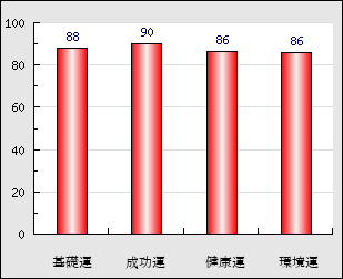 成功運 目的に対する成功運の強さをあらわします。この点数が高いほど自分の思い通りに成功し、逆に悪いと逆境・批判・障害などに苦心します。 90点