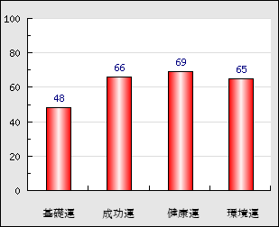 環境運 家庭や職場等での援助運・環境運を司ります。これが良いと配偶者や子供・職場の同僚などから助力が得られやすく、悪いと波乱・不和・孤独などがあります。 65点