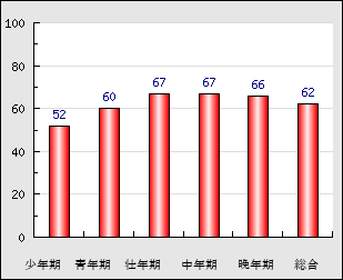 | 壮年期 | 35~50歳頃 | 64.3点+ 2.3 |