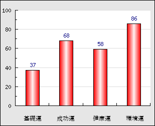 環境運 家庭や職場等での援助運・環境運を司ります。これが良いと配偶者や子供・職場の同僚などから助力が得られやすく、悪いと波乱・不和・孤独などがあります。 86点