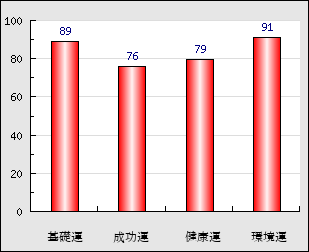 環境運 家庭や職場等での援助運・環境運を司ります。これが良いと配偶者や子供・職場の同僚などから助力が得られやすく、悪いと波乱・不和・孤独などがあります。 91点
