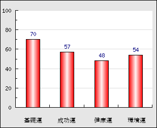 環境運 家庭や職場等での援助運・環境運を司ります。これが良いと配偶者や子供・職場の同僚などから助力が得られやすく、悪いと波乱・不和・孤独などがあります。 54点