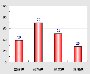 成功運 目的に対する成功運の強さをあらわします。この点数が高いほど自分の思い通りに成功し、逆に悪いと逆境・批判・障害などに苦心します。 70点