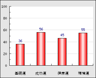 環境運 家庭や職場等での援助運・環境運を司ります。これが良いと配偶者や子供・職場の同僚などから助力が得られやすく、悪いと波乱・不和・孤独などがあります。 55点