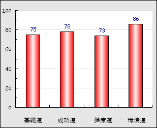 環境運 家庭や職場等での援助運・環境運を司ります。これが良いと配偶者や子供・職場の同僚などから助力が得られやすく、悪いと波乱・不和・孤独などがあります。 86点