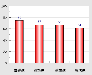 環境運 家庭や職場等での援助運・環境運を司ります。これが良いと配偶者や子供・職場の同僚などから助力が得られやすく、悪いと波乱・不和・孤独などがあります。 61点