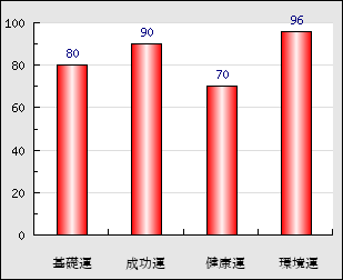 成功運 目的に対する成功運の強さをあらわします。この点数が高いほど自分の思い通りに成功し、逆に悪いと逆境・批判・障害などに苦心します。 90点