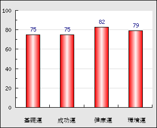 環境運 家庭や職場等での援助運・環境運を司ります。これが良いと配偶者や子供・職場の同僚などから助力が得られやすく、悪いと波乱・不和・孤独などがあります。 79点