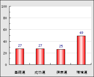 環境運 家庭や職場等での援助運・環境運を司ります。これが良いと配偶者や子供・職場の同僚などから助力が得られやすく、悪いと波乱・不和・孤独などがあります。 49点
