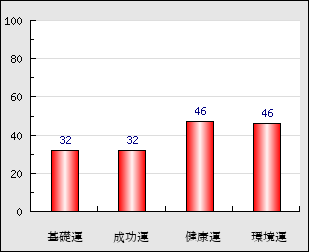 環境運 家庭や職場等での援助運・環境運を司ります。これが良いと配偶者や子供・職場の同僚などから助力が得られやすく、悪いと波乱・不和・孤独などがあります。 46点