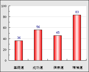 環境運 家庭や職場等での援助運・環境運を司ります。これが良いと配偶者や子供・職場の同僚などから助力が得られやすく、悪いと波乱・不和・孤独などがあります。 83点