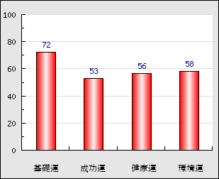 環境運 家庭や職場等での援助運・環境運を司ります。これが良いと配偶者や子供・職場の同僚などから助力が得られやすく、悪いと波乱・不和・孤独などがあります。 58点