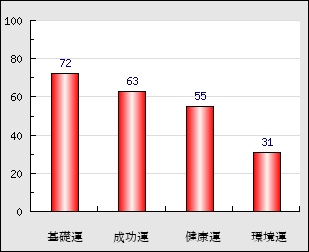 環境運 家庭や職場等での援助運・環境運を司ります。これが良いと配偶者や子供・職場の同僚などから助力が得られやすく、悪いと波乱・不和・孤独などがあります。 31点