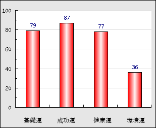 環境運 家庭や職場等での援助運・環境運を司ります。これが良いと配偶者や子供・職場の同僚などから助力が得られやすく、悪いと波乱・不和・孤独などがあります。 36点