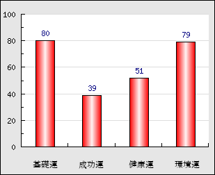 | 環境運 | 家庭や職場等での援助運・環境運を司ります。これが良いと配偶者や子供・職場の同僚などから助力が得られやすく、悪いと波乱・不和・孤独などがあります。 | 79点 |