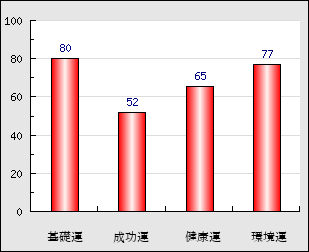環境運 家庭や職場等での援助運・環境運を司ります。これが良いと配偶者や子供・職場の同僚などから助力が得られやすく、悪いと波乱・不和・孤独などがあります。 77点