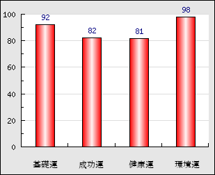 環境運 家庭や職場等での援助運・環境運を司ります。これが良いと配偶者や子供・職場の同僚などから助力が得られやすく、悪いと波乱・不和・孤独などがあります。 98点