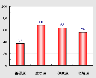 成功運 目的に対する成功運の強さをあらわします。この点数が高いほど自分の思い通りに成功し、逆に悪いと逆境・批判・障害などに苦心します。 68点