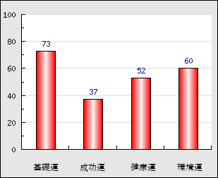 成功運 目的に対する成功運の強さをあらわします。この点数が高いほど自分の思い通りに成功し、逆に悪いと逆境・批判・障害などに苦心します。 37点