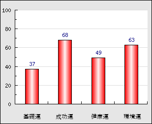 成功運 目的に対する成功運の強さをあらわします。この点数が高いほど自分の思い通りに成功し、逆に悪いと逆境・批判・障害などに苦心します。 68点
