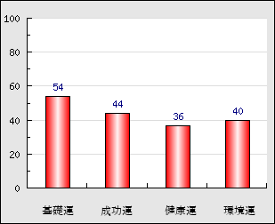 成功運 目的に対する成功運の強さをあらわします。この点数が高いほど自分の思い通りに成功し、逆に悪いと逆境・批判・障害などに苦心します。 44点