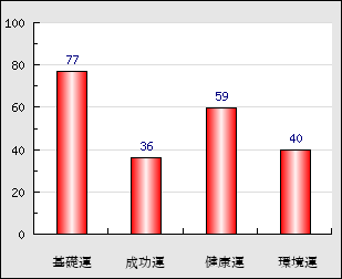 環境運 家庭や職場等での援助運・環境運を司ります。これが良いと配偶者や子供・職場の同僚などから助力が得られやすく、悪いと波乱・不和・孤独などがあります。 40点