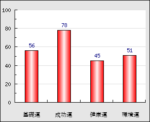 環境運 家庭や職場等での援助運・環境運を司ります。これが良いと配偶者や子供・職場の同僚などから助力が得られやすく、悪いと波乱・不和・孤独などがあります。 51点