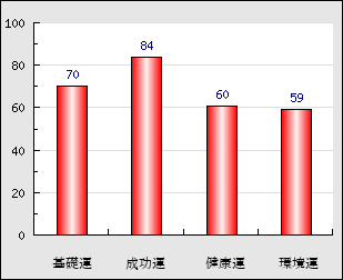 成功運 目的に対する成功運の強さをあらわします。この点数が高いほど自分の思い通りに成功し、逆に悪いと逆境・批判・障害などに苦心します。 84点