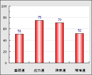 成功運 目的に対する成功運の強さをあらわします。この点数が高いほど自分の思い通りに成功し、逆に悪いと逆境・批判・障害などに苦心します。 75点