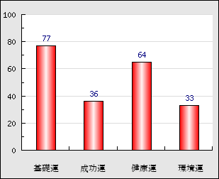 環境運 家庭や職場等での援助運・環境運を司ります。これが良いと配偶者や子供・職場の同僚などから助力が得られやすく、悪いと波乱・不和・孤独などがあります。 33点