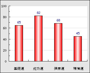 環境運 家庭や職場等での援助運・環境運を司ります。これが良いと配偶者や子供・職場の同僚などから助力が得られやすく、悪いと波乱・不和・孤独などがあります。 45点