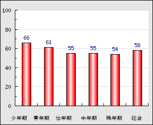 | 壮年期 | 35~50歳頃 | 55点- 3.0 |