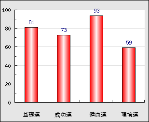 環境運 家庭や職場等での援助運・環境運を司ります。これが良いと配偶者や子供・職場の同僚などから助力が得られやすく、悪いと波乱・不和・孤独などがあります。 59点