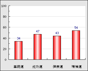 成功運 目的に対する成功運の強さをあらわします。この点数が高いほど自分の思い通りに成功し、逆に悪いと逆境・批判・障害などに苦心します。 47点