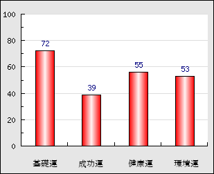 成功運 目的に対する成功運の強さをあらわします。この点数が高いほど自分の思い通りに成功し、逆に悪いと逆境・批判・障害などに苦心します。 39点