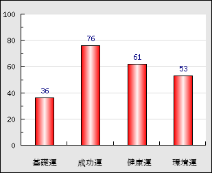 成功運 目的に対する成功運の強さをあらわします。この点数が高いほど自分の思い通りに成功し、逆に悪いと逆境・批判・障害などに苦心します。 76点
