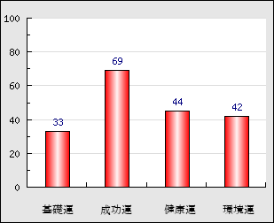 成功運 目的に対する成功運の強さをあらわします。この点数が高いほど自分の思い通りに成功し、逆に悪いと逆境・批判・障害などに苦心します。 69点