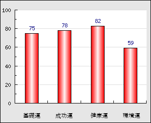 環境運 家庭や職場等での援助運・環境運を司ります。これが良いと配偶者や子供・職場の同僚などから助力が得られやすく、悪いと波乱・不和・孤独などがあります。 59点