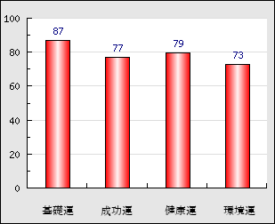 環境運 家庭や職場等での援助運・環境運を司ります。これが良いと配偶者や子供・職場の同僚などから助力が得られやすく、悪いと波乱・不和・孤独などがあります。 73点