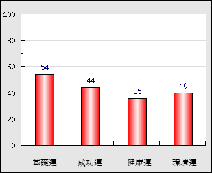 成功運 目的に対する成功運の強さをあらわします。この点数が高いほど自分の思い通りに成功し、逆に悪いと逆境・批判・障害などに苦心します。 44点