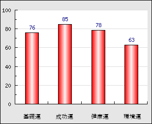成功運 目的に対する成功運の強さをあらわします。この点数が高いほど自分の思い通りに成功し、逆に悪いと逆境・批判・障害などに苦心します。 85点