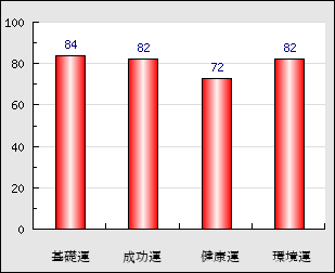 環境運 家庭や職場等での援助運・環境運を司ります。これが良いと配偶者や子供・職場の同僚などから助力が得られやすく、悪いと波乱・不和・孤独などがあります。 82点