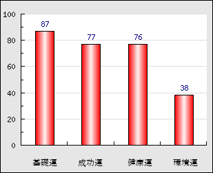 環境運 家庭や職場等での援助運・環境運を司ります。これが良いと配偶者や子供・職場の同僚などから助力が得られやすく、悪いと波乱・不和・孤独などがあります。 38点