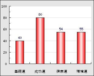 成功運 目的に対する成功運の強さをあらわします。この点数が高いほど自分の思い通りに成功し、逆に悪いと逆境・批判・障害などに苦心します。 80点
