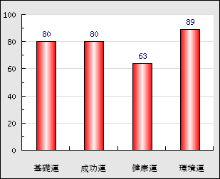 成功運 目的に対する成功運の強さをあらわします。この点数が高いほど自分の思い通りに成功し、逆に悪いと逆境・批判・障害などに苦心します。 80点