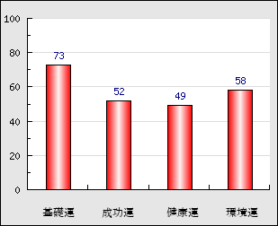 成功運 目的に対する成功運の強さをあらわします。この点数が高いほど自分の思い通りに成功し、逆に悪いと逆境・批判・障害などに苦心します。 52点