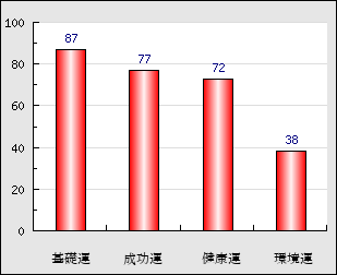 環境運 家庭や職場等での援助運・環境運を司ります。これが良いと配偶者や子供・職場の同僚などから助力が得られやすく、悪いと波乱・不和・孤独などがあります。 38点