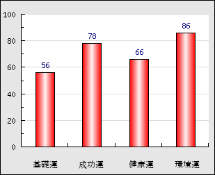 環境運 家庭や職場等での援助運・環境運を司ります。これが良いと配偶者や子供・職場の同僚などから助力が得られやすく、悪いと波乱・不和・孤独などがあります。 86点
