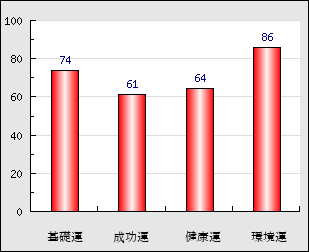 環境運 家庭や職場等での援助運・環境運を司ります。これが良いと配偶者や子供・職場の同僚などから助力が得られやすく、悪いと波乱・不和・孤独などがあります。 86点