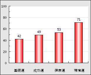 環境運 家庭や職場等での援助運・環境運を司ります。これが良いと配偶者や子供・職場の同僚などから助力が得られやすく、悪いと波乱・不和・孤独などがあります。 71点
